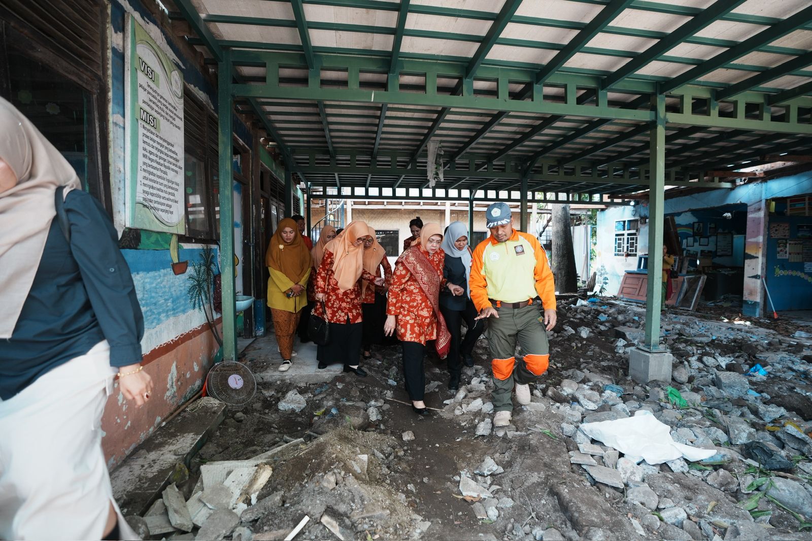 Lebih lanjut, Helmi turut memberikan semangat moril kepada para siswa. Ia menyapa, menyalami dan berbincang akrab dengan mereka, memberikan motivasi agar tidak patah semangat. “Anak-anak didikku sekalian, tetaplah semangat. Kejadian ini tidak boleh menurunkan semangat belajarnya,” pesannya.