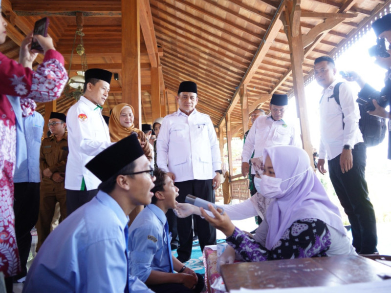 Santri Pondok Pesantren Al-amanah melakukan pengecekan dalam program Cek Kesehatan Gratis (Foto: Dwiki Iqbal)