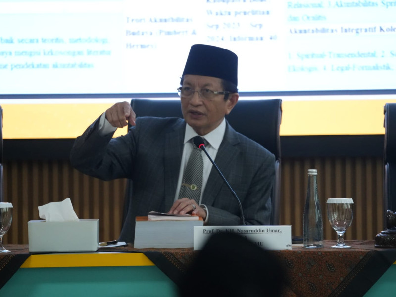 Serang (Kemenag) — Menteri Agama Nasaruddin Umar menjadi Penguji Eksternal pada Sidang Ujian Disertasi (Terbuka) M. Aras Prabowo di gedung FEB Sultan Ageng Tirtayasa, Banten, Sabtu (27/09/25).